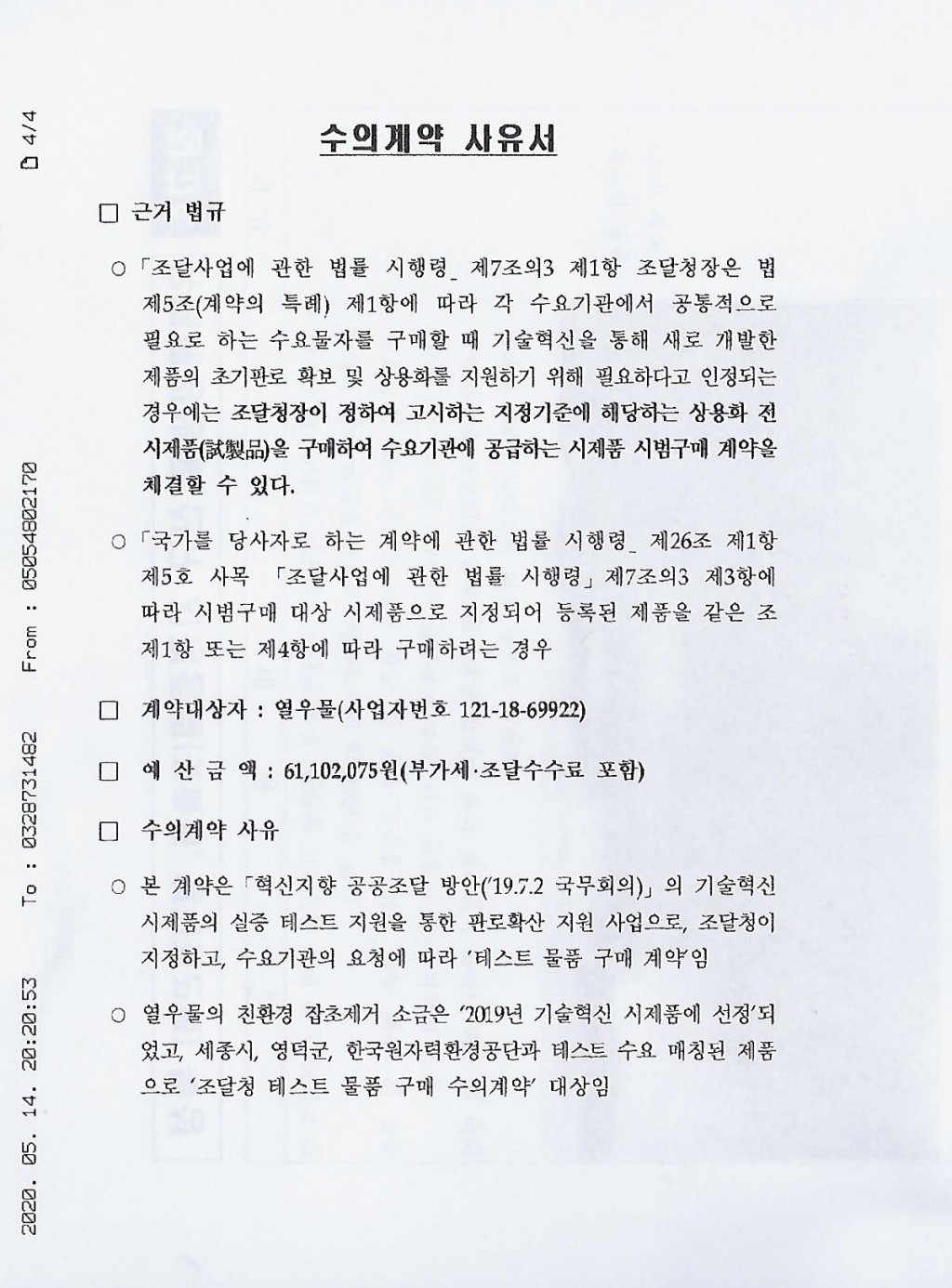 조달청 본청 친환경 잡초제거 소금 계약체결
