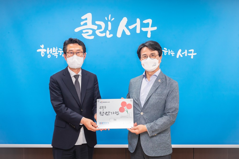 이재현 서구청장은 “코로나1로 기업 운영에 어려움이 있을 것임에도 지역 내 주민에게 따뜻한 관심과 지원을 해주신 열우물에 감사드린다”며 “도움이 필요한 이웃에게 잘 전달하겠다”고 답했다.